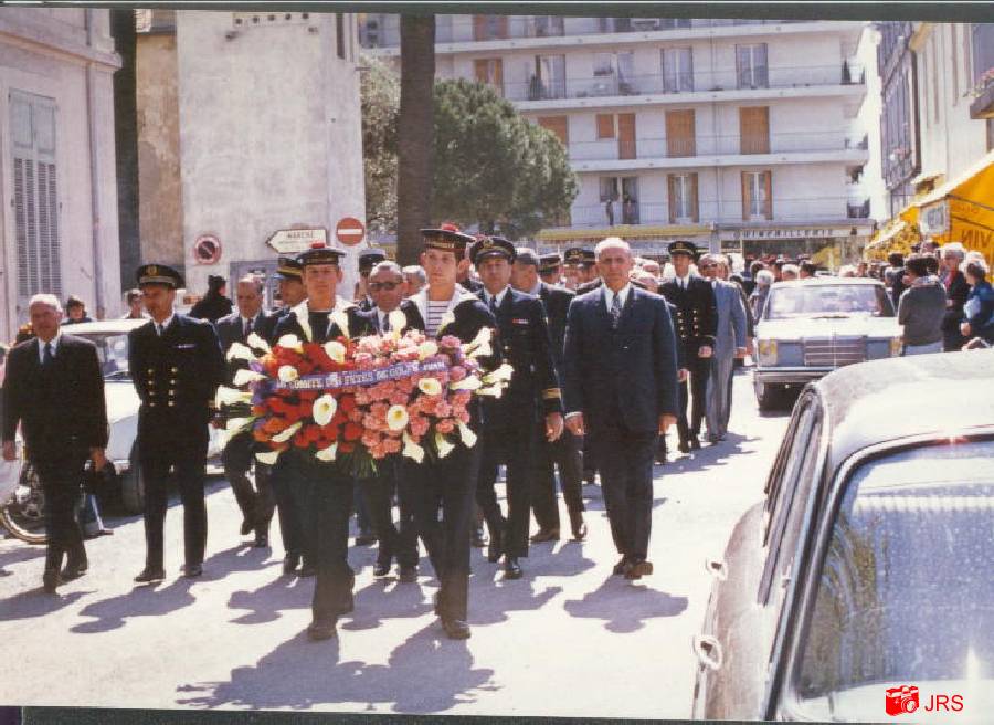 . 1972. Cérémonie à Golfe-Juan. Dépot de gerbe au monument aux morts. .