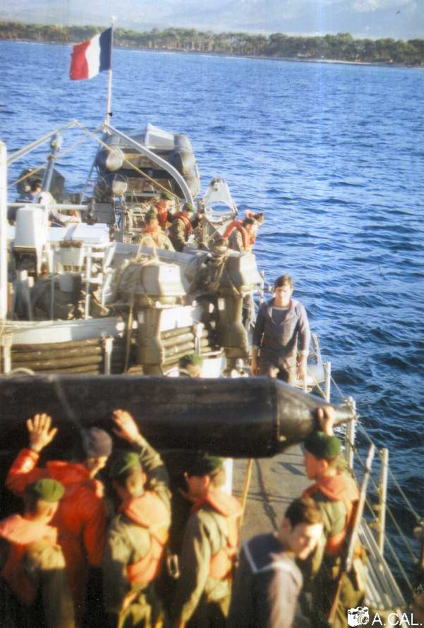 Janvier 1974. CALVI. Embarquement de légionnaires du 2ème REP (2ème Régiment Etranger Parachutistes)