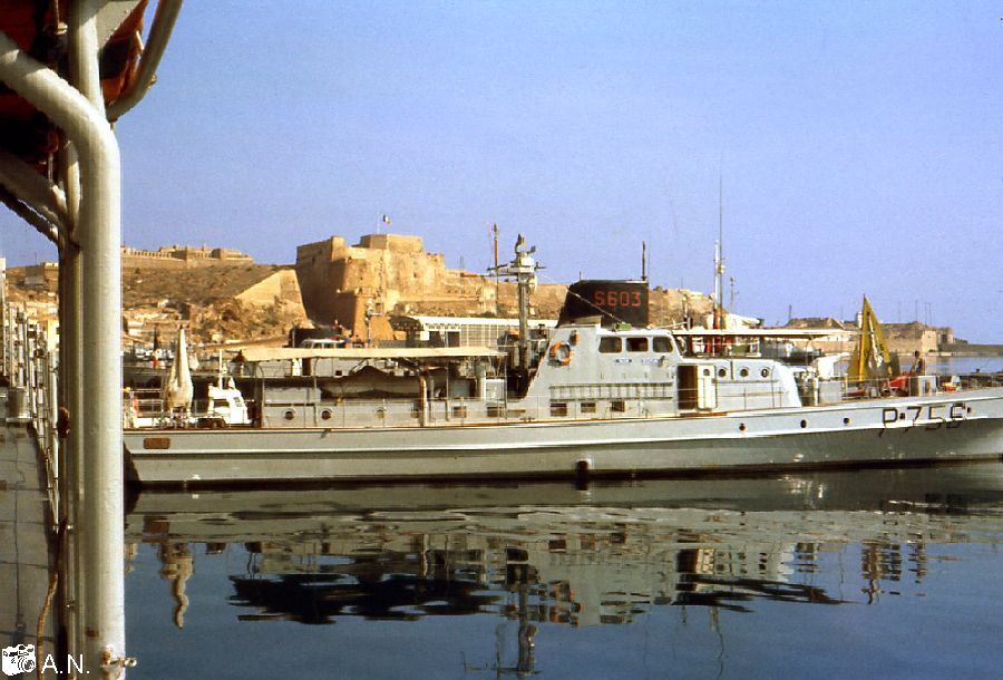 .Depuis LE FRINGANT, la vedette côtière VC6, le kiosque de L' ARTEMIS et au fond le fort