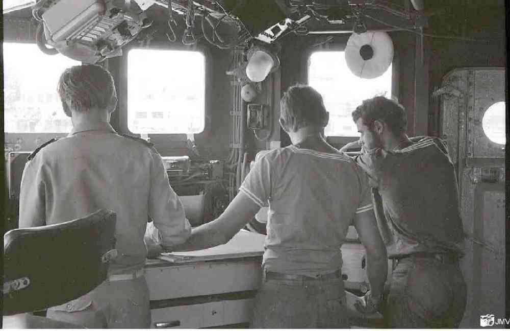 de gauche à droite : Aspt DE LA MORANDIERE - QM1 RICKMAN - Mlot. X -