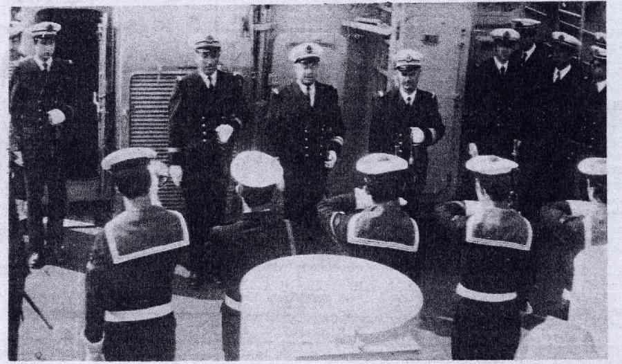 Au centre le CF DESAIEUX, à gauche le LV KANENGIESER, à gauche le CC DE KERVILER.