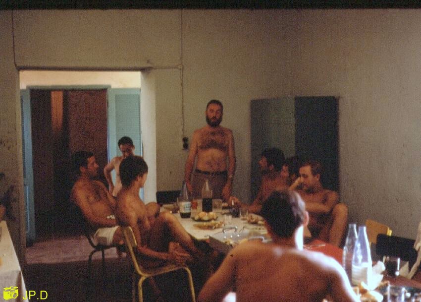 Dakar, une chambrée de l'arsenal. Un repas décontracté reunissant tout l'équipage. l