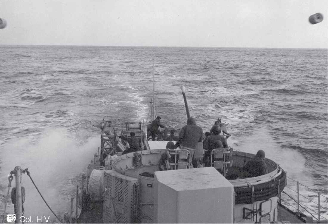 . avril ou mai 1959. Essais de grenadage au large de Lorient .