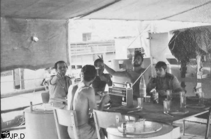 Le PM Marianini qui fait de grands gestes, de dos le SM Scheaffer et le barbu le PM. Magnin.