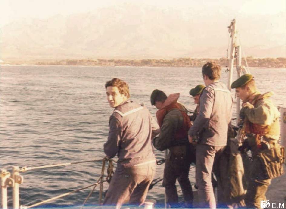 . Janvier 1974. CALVI. Embarquement de légionnaires du 2ème REP (2ème Régiment Etranger Parachutistes). .