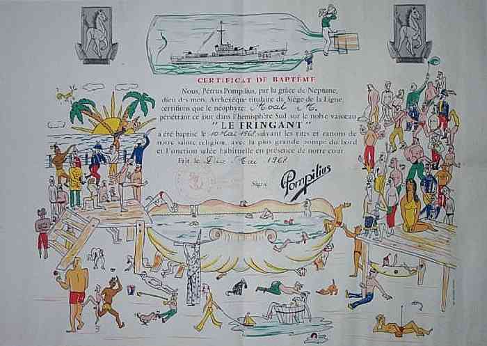1968. Certificat de baptême du passage de la Ligne..