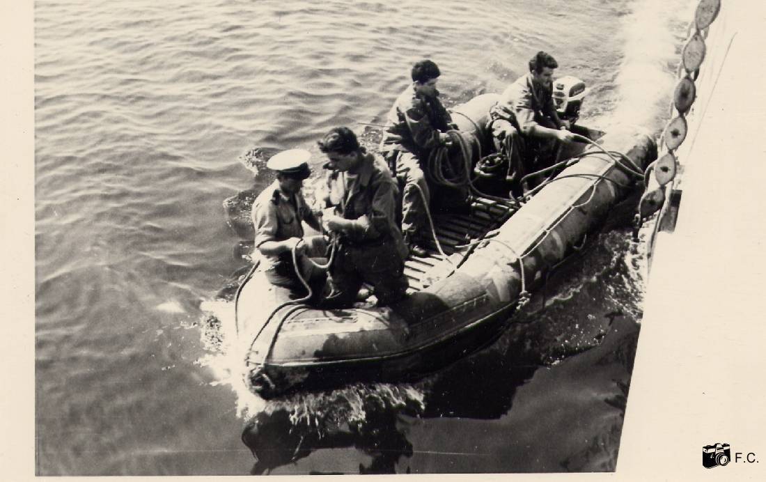 1961. Mission SURMAR. Départ du dinghy pour aller contrôler un chalutier.