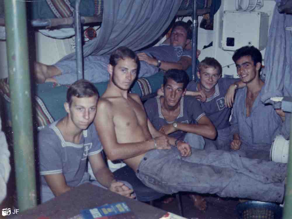 Equipage poste 1. Allongé: AMIEL ou GUYGNOT ? - De G à D : MATHIAS - J. FULCHIC - ? - ? - ? -