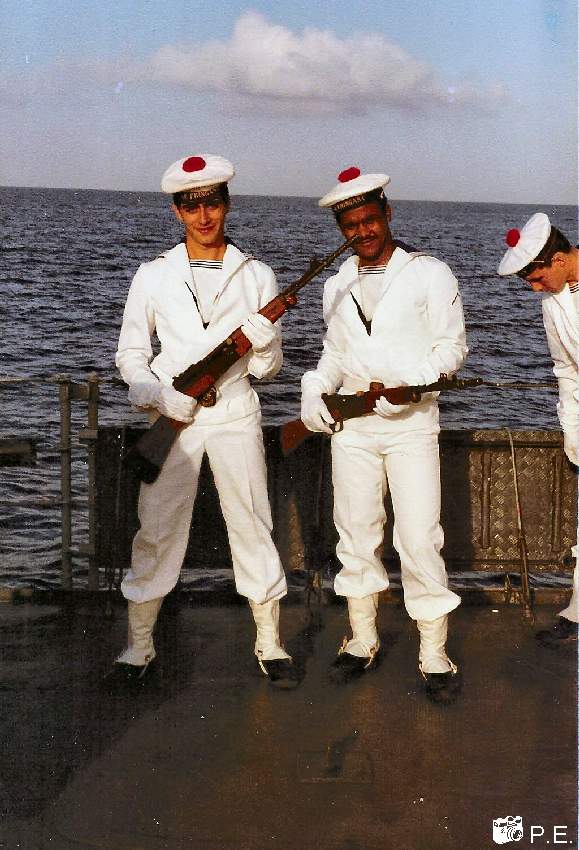 . Mise en place de la garde d'honneur pour l'arrivée à Ponto Delgada port de l'île de Sao Miguel.