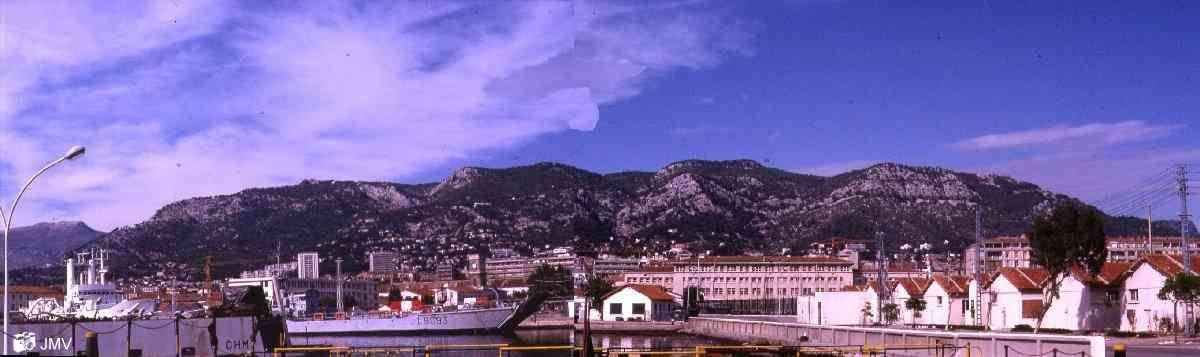 Août 1975. Le mont Faron vu depuis le bassin de radoub.