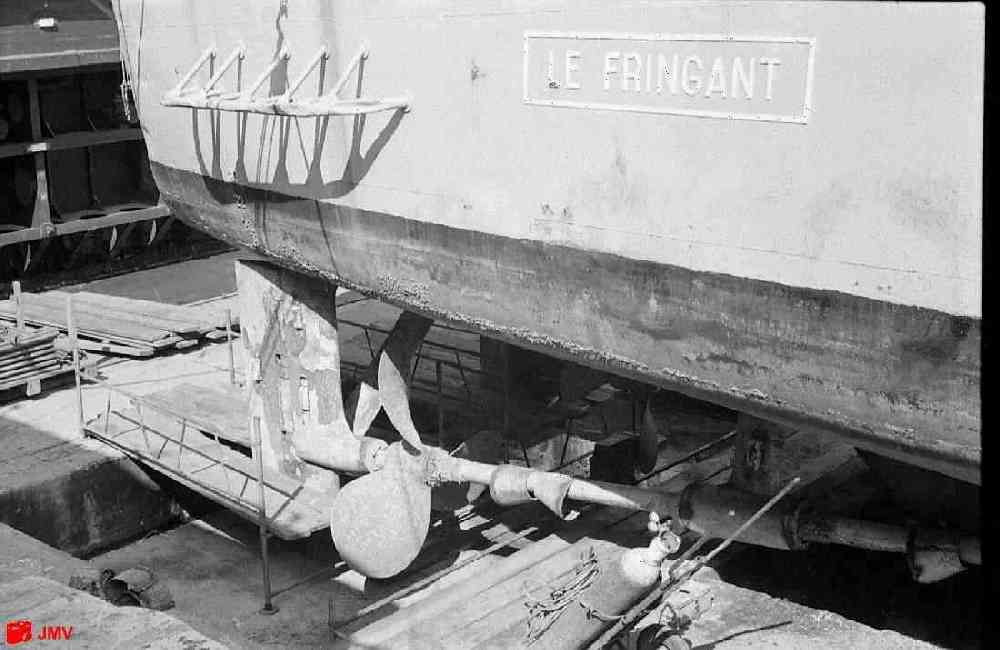 Eté 1975. En radoub pour travaux de refonte. Réparations sur hélices et arbres d'hélice.