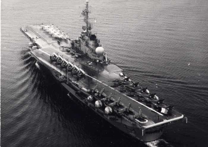 En juillet 1974, nous avons passé une semaine à bord. Le bâtiment était en cale séche pour diverses révisions techniques. Cette semaine fut pour nous l'occasion de perfectionner notre apprentissage et de toucher au plus près la vie du Marin. De plus, outre une sortie à la mer sur un dragueur de mines ( voir page précédente ), nous servîmes également de "plastron" pour un exercice avec des Commandos Marine qui figuraient une bande de reconnaissance ennemie, ce qui nous permis (pour ceux de son groupe) d'apprécier l'experience en la matière du PM FAIVRES. Pour l'anecdote, nous eumes finalement raison de cette bande d'intrus. Nous n'avons jamais arboré la bande CLEMENCEAU sur notre bachi. Notre tenue était celle que nous portions en tant que stagiaires: bachi avec bande Préparation Militaire Marine, tenue de travail "jean" gris-bleu avec badge d'épaule PMM CF KIEFFER et rangers. La bande CLEMENCEAU est juste un souvenir de mon passage à bord.