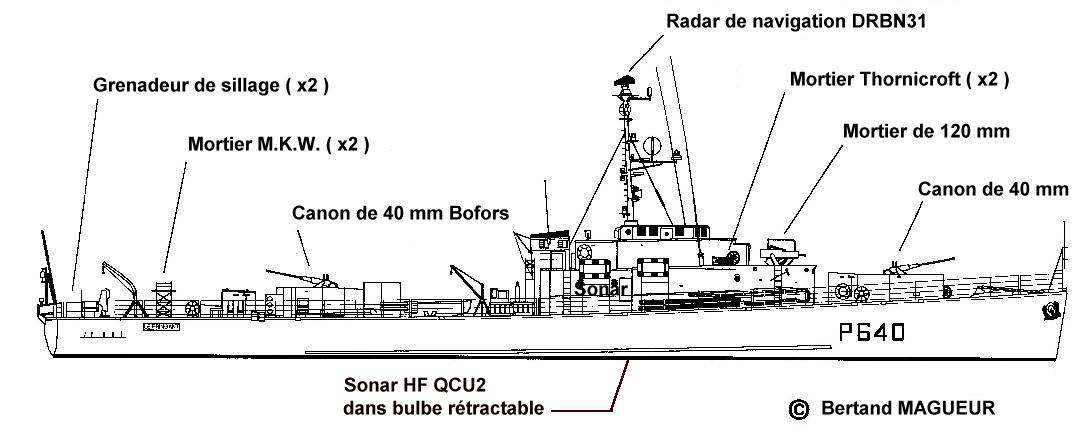 Silhouette armement d'origine de l'escorteur LE FRINGANT